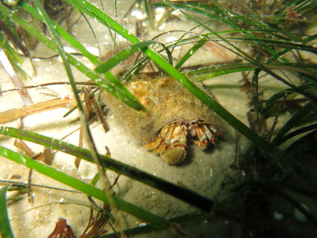 Der er ved at være meget liv der ude! Et par store eremitkrebs gemte sig i ålegræsset og ellers var der sandkutlinger alle steder.