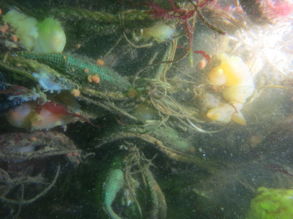 45 minutter senere var det tid til at bytte så mit hold kom i vandet. Sigten var ikke som et godt vinterdyk men bestemt brugbar. Dykket forløb uden problemer ind til vi skulle op for så var min Deco-bøje pludseligt blevet utæt og virket mere som anker end bøje. Opstigningen gik dog okay alligevel.