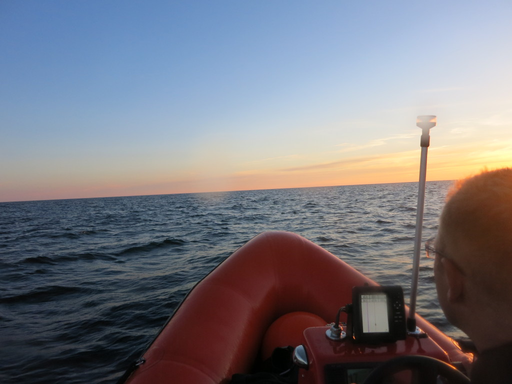 Forholdene ved Grenå er fine, så søsætningen gik problemfrit. Og så skulle den nye Tornado vise hvad den kunne. Med Rene’ ved rat og kontrolhåndtag forsvandt Grenå hurtigt agterude og havmølleparken ved Anholt dukkede op om bagbord. Sø og dønning var minimal, så op og plane og derefter en rolig sejlads med god fart og en passende tilfreds summen fra motoren. På et tidspunkt skulle det lige afprøves hvad der ville ske hvis gashåndtaget blev presset i bund? Det gav frisk vind i ansigtet.