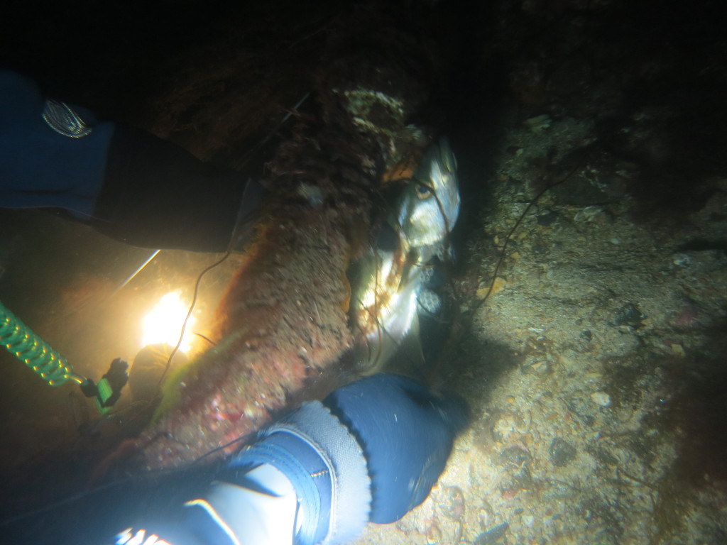 Claus og Emil havde haft en del problemer med deres udstyr på det første dyk og ville derfor tage et natdyk for lige at tjekke om problemerne var blevet løst. Det skulle bare have været et kort dyk med det viste sig at være massere at se på, tage billeder af og skyde på så det blev et dyk på næsten en time. Billederne taler for sig selv.