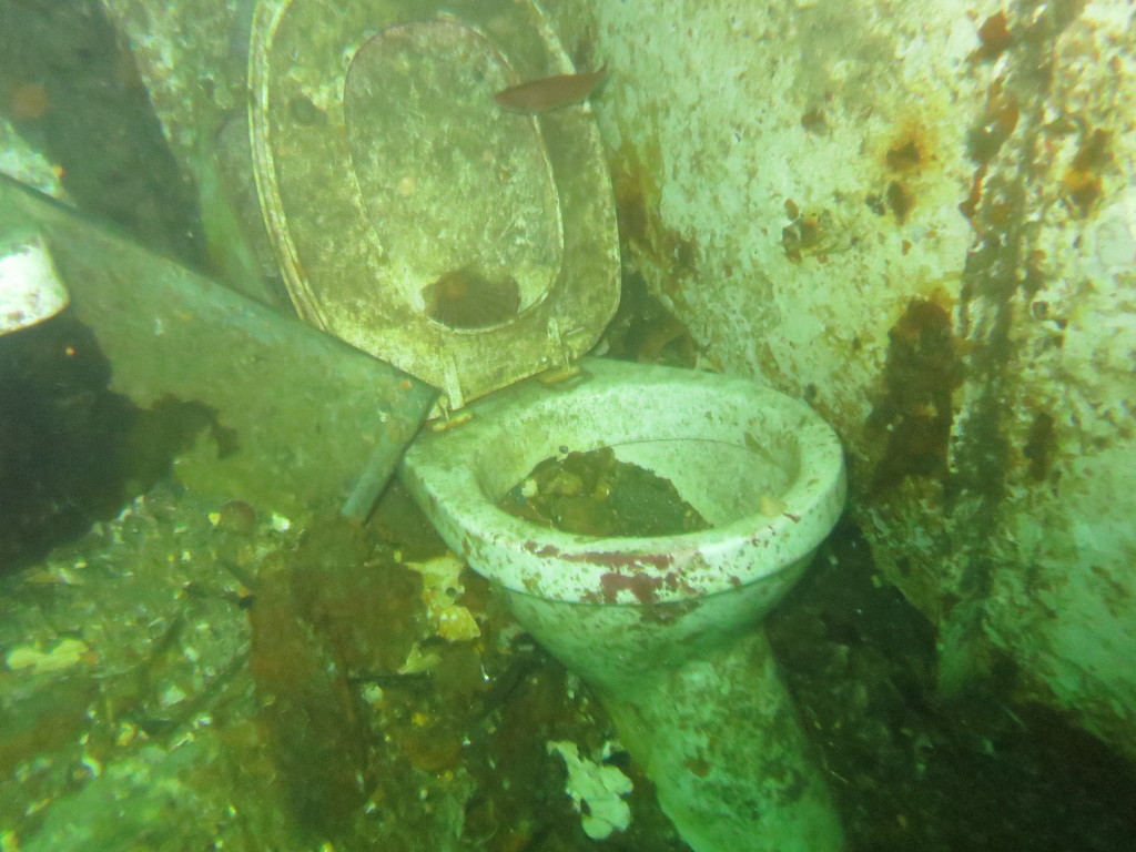 Da vi forlod kedlerne var der allerede løbet et minuts mere deco på end aftalt og vi måtte derfor skynde os over det næste stykke af vraget for at komme op langs vægen til en dybde hvor deco kunne begynde at tælle ned i stedet for op. Efter betydelig længere tid på lavt vand end vi nået på dybden gav computeren os lov at gå i overfladen kun et minutter senere end aftalt.