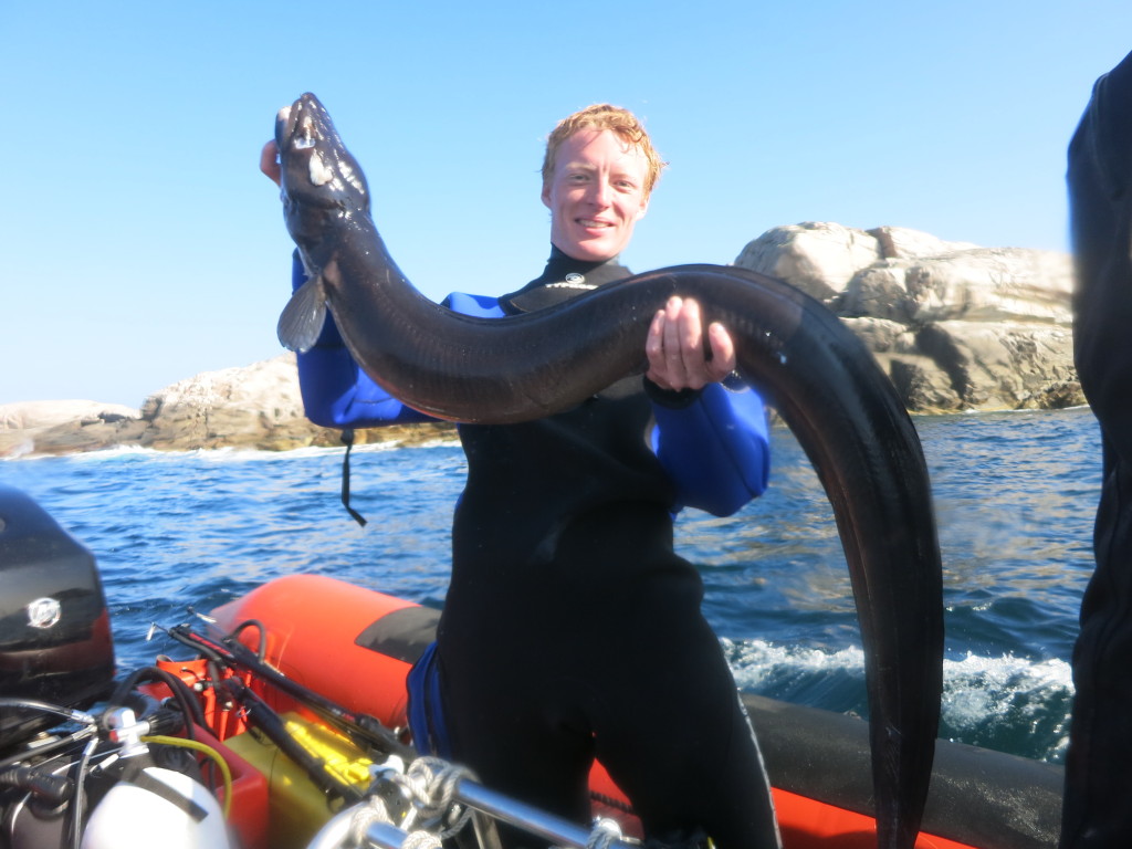 På vej op svømmet vi i en kløft og pludselig angriber den store havål Emil. I rent selvforsvar og uden større overvejelser skyder han den. Ålen er stor og det er ikke tilstrækkeligt med et enkelt skud. Palle kommer til undsætning og affyrer sin harpun med stor præcision. Havålen forsætter upåvirket sit brutale angreb på de uskyldige værgeløse dykkere. Emil trækker kniven, men den brækker halvvejs inde i havålen. Status for den store havål er nu: 2 harpunskud, et halvt knivsblad i hovedet og to indædte mænd i nærkamp. Emil og Palle er pressede og tager reservekniven i brug. Unfair! Udbryder havålen og lukker for Emils flaske så han må ud og låne luft af tredjedykker Pernille. Imens hiver havålen blybæltet af Palle. Udfaldet af kampen er nu i havålens favør. Emil er tilbage i gamet. Nu med egen luft igen. Han kaster sig ind i kampen mod havålen med den ene hånd, med den anden forsøger han at påmontere Palles bly og Emil overvejer nu alvorligt at bide struben over for at ende slaget. Palle har nu bly om kroppen igen og ålen er træt. 3 dybe hug mere og havålen giver endelig op. Vi filtrer os ud af alle de harpuner, liner og slanger og forsætter lettere rystet!