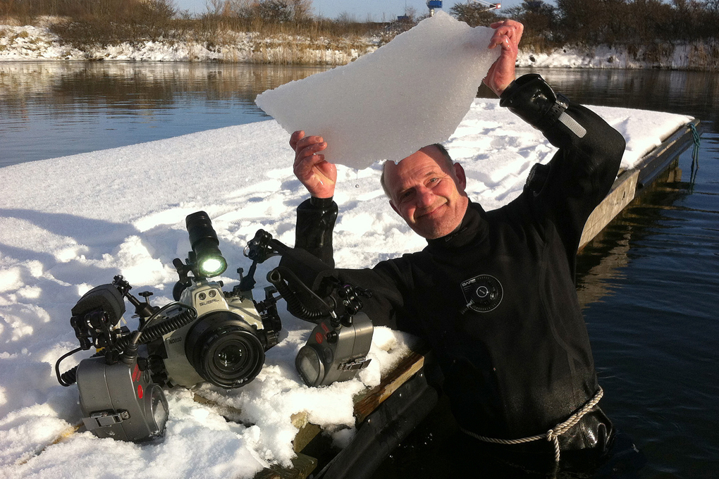 Sigten var fantastisk omkring 8 -10 meter, vandet 4 grader varmt og der var et mylder af nøgensnegle, dvs næsten udelukkende de små hvide Onchidoris muricata på ca 1 cm længde. Nogle små sjove dyr. Desværre blev fingrene så kolde efter 40 minutter at jeg ikke længere kunne trykke på udløseren på kameraet og dykket måtte afbrydes – så nu kigger jeg tørhandsker – for en dag, som denne, kunne jeg godt havde brugt et par timer under vandet.