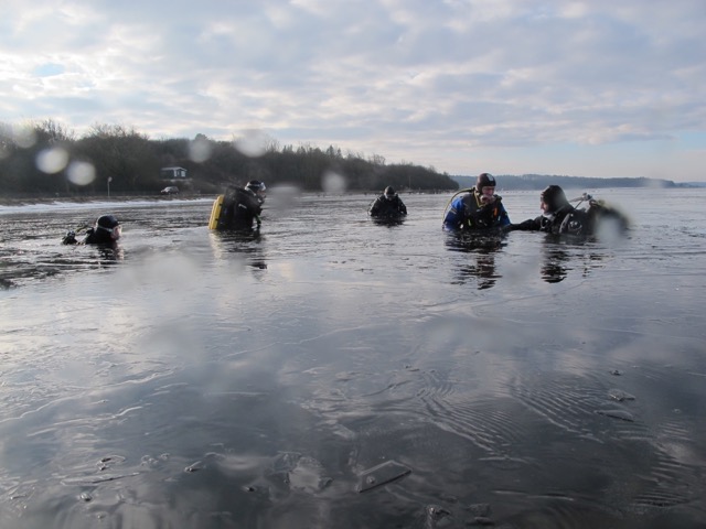 Så kom der endelig is på Mariager fjord og vi satte kursen mod Mariager Saltcentret, Det var -3 grader og vandet lige over frysepunktet. Springlag, uendelig mange muslinger, rejser og en fantastisk sigt. 8 BioDykker tog afsted……………..