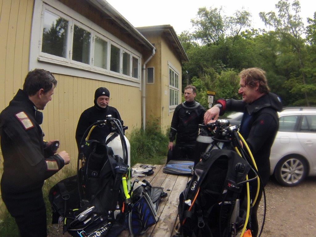 Af hensyn til strømforholdene valgte vi en tidlig start kl. 8:30. Første dyk bød på roligt vand med svag strøm og gode dyk. Jørgen og Morten søgte mod dybden, Raied og Stig tog turen på 15-17 m vestover og på 8 m tilbage og fik medstrøm begge veje. Sigten var middel til ringe, men en enkelt stor stenbider blev spottet.