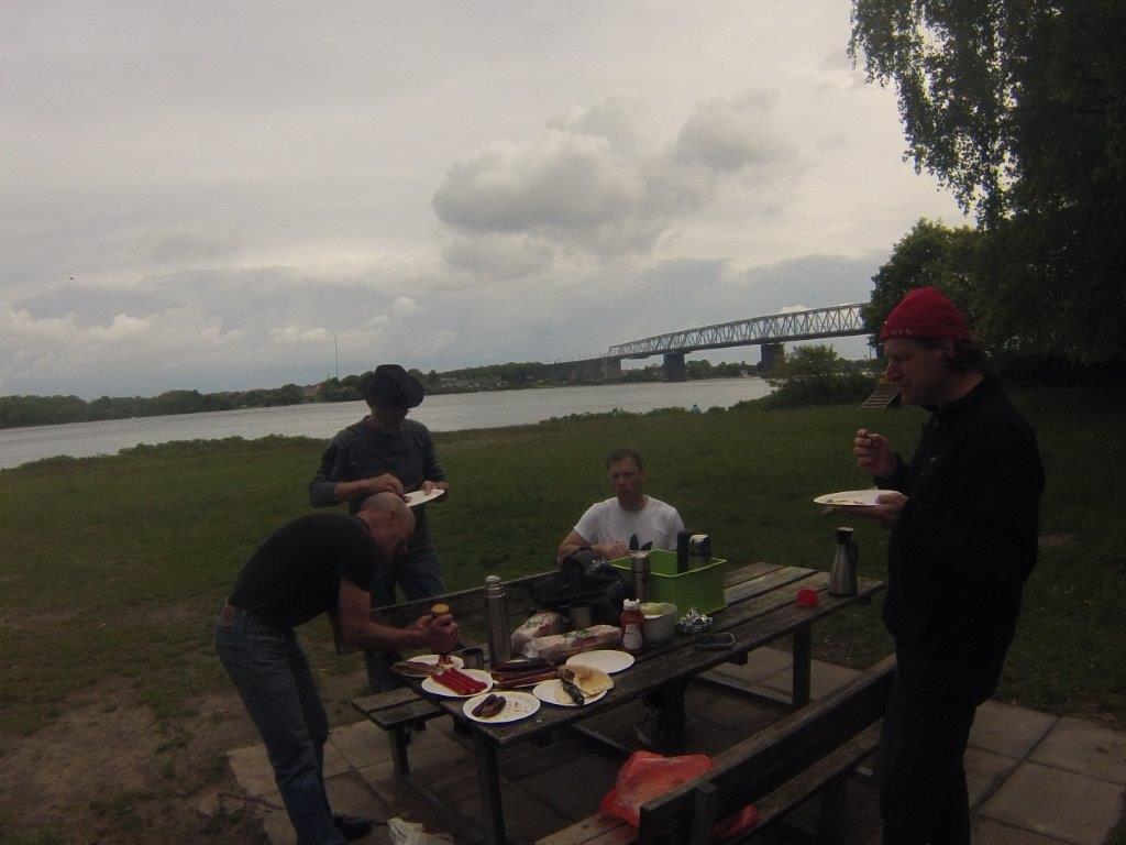 Raied havde startet grillen og en velfortjent frokost blev nydt i solen. En skøn dag ved bæltet i godt selskab.