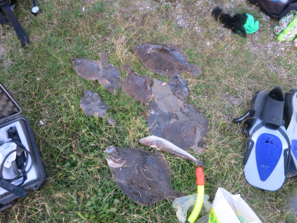 Efter første dyk var der bred enighed om at vi havde valgt en god dag. Fiskene lå i bunker og der lå nogle særdeles pæne fisk iblandt. Det kan selvfølgelig være lige meget når man vælger at putte sine fisk i en plasticpose, og placere den i vandkanten med en stor, dog ikke stor nok, bunke sten henover.. ikke også Kasper?