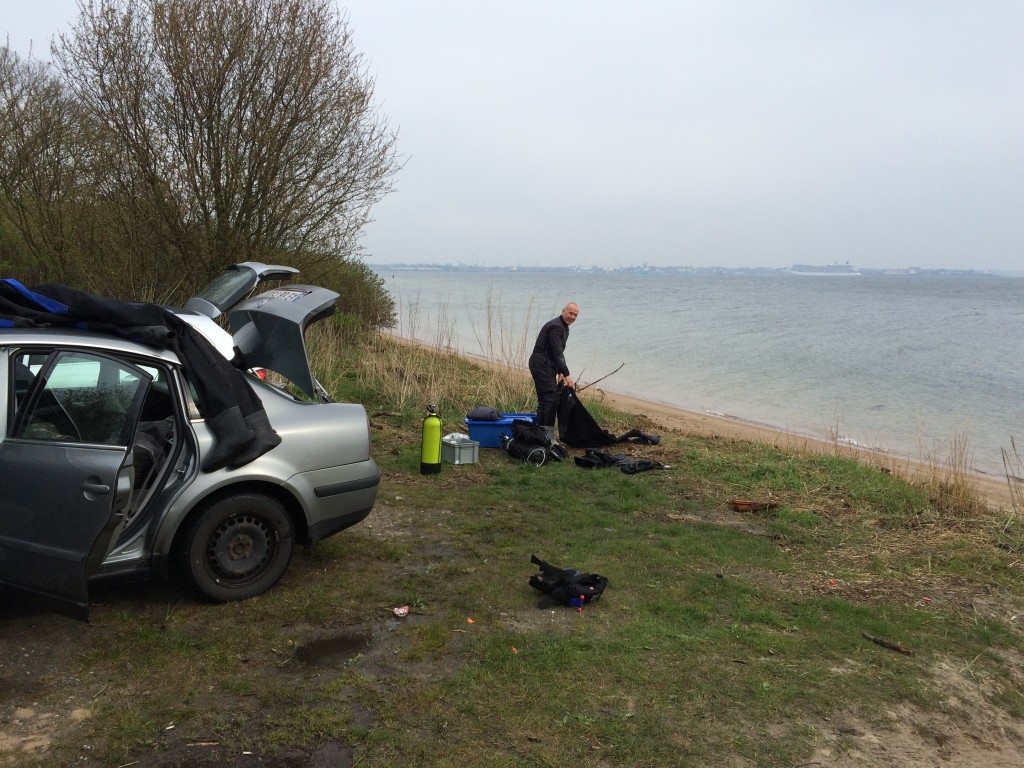 Vi var 3 dykkere, der mødes på en regnfuld lørdag morgen ved Ammoniak haven