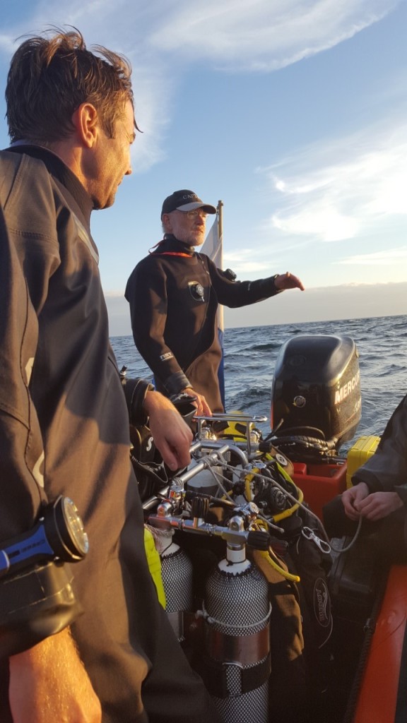 Palle, René og Jørgen gik i først til 45 min, Christian, Emil og Sebastian fulgte efter mens Jess og jeg tog ankervagten. Første hold nød turen så meget at den udmeldte tid blev overskredet med flere minutter, dog uden at skabe ængstelse ombord, kun lidt skæld ud til Rene og Palle. Vandet var superfint, svag strøm, god sigt og masser af liv med sej-stime, hummere og andet spændene at se på.
