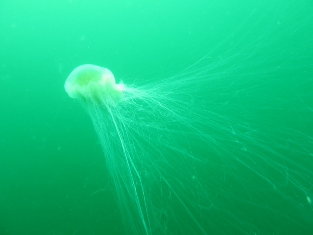 Vi andre kom i og havde endnu et fint dyk med flere torsk og andet liv. På vej op kom vi lige forbi en brændmand som havde flere små fisk der havde søgt sikkerhed i ly af dens brændende tråde.