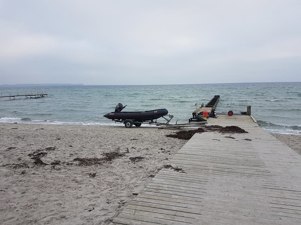 Tirsdagsdyk vel overstået! Det blev et ret aktivt tirsdagsdyk da broen er pillet ned… Jeg ankom til klubbeessn ret tidligt og stod sammen med Jess og kiggede på en bådebro hvor halvdelen manglede… vi begyndte at snakke om stranddyk, men heldigvis havde Jess set et par stålskinner som godt nok lå under en stabel brædder fra broen… Søren var en anelse skeptisk mens vi pakkede båden og fyldte 200 L luft i den (den var meget flad). Vi pakkede det hele og smed stålskinnerne oveni båden og slæbte den ned…. og ret hurtigt stod den sorte båd på stranden ved siden af broen… “Hvordan får vi den tilbage?” – “Det løser vi når vi HAR dykket!”… Det gik faktisk enormt nemt at få den ned!