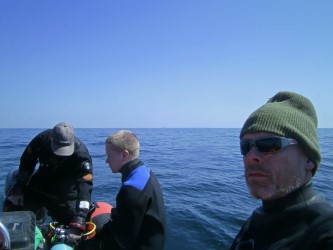 Oppe igen efter 23 min på tovet (godt vi havde fået ilt på ellers var vi vist ikke kommet hjem den dag). Vejret var ikke blevet værre og solcremen var en ganske god ting.