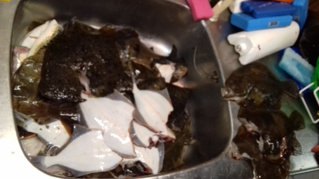 Ude ved Glatved kom vi i vandet og efter lidt søgen begyndte der også at komme fisk i nettet. Efter en time var der en fjæsing der døde. Den nået dog at tage hævn med en der til hævet finger til følge. Efter 90 min kom der en pighvar på knap 40 cm i netter og så gik det ellers mod land.