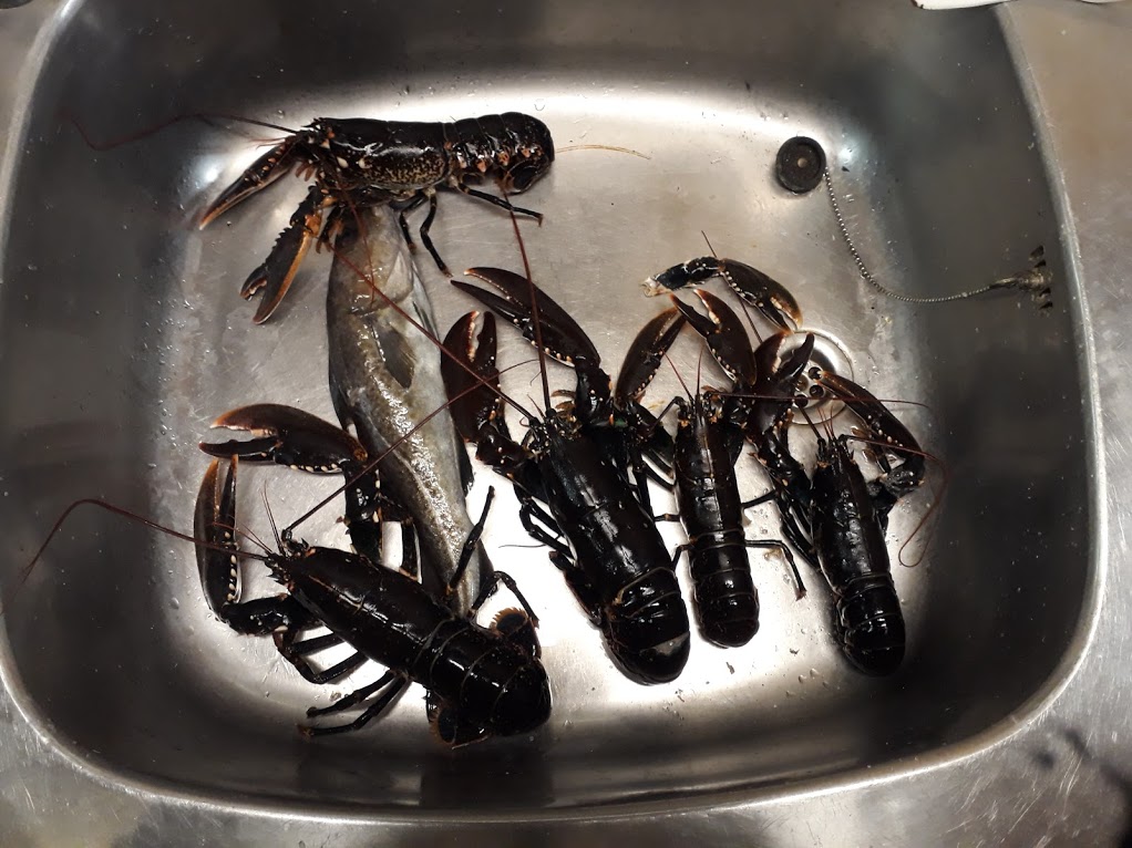 Emil, René, Jakob og jeg var et smut ude i bugten og det blev til nogle fine dyk ved Olympia og Hummerrevet. Der var en masse hummere begge steder og vi var også så heldige at få et par med hjem.