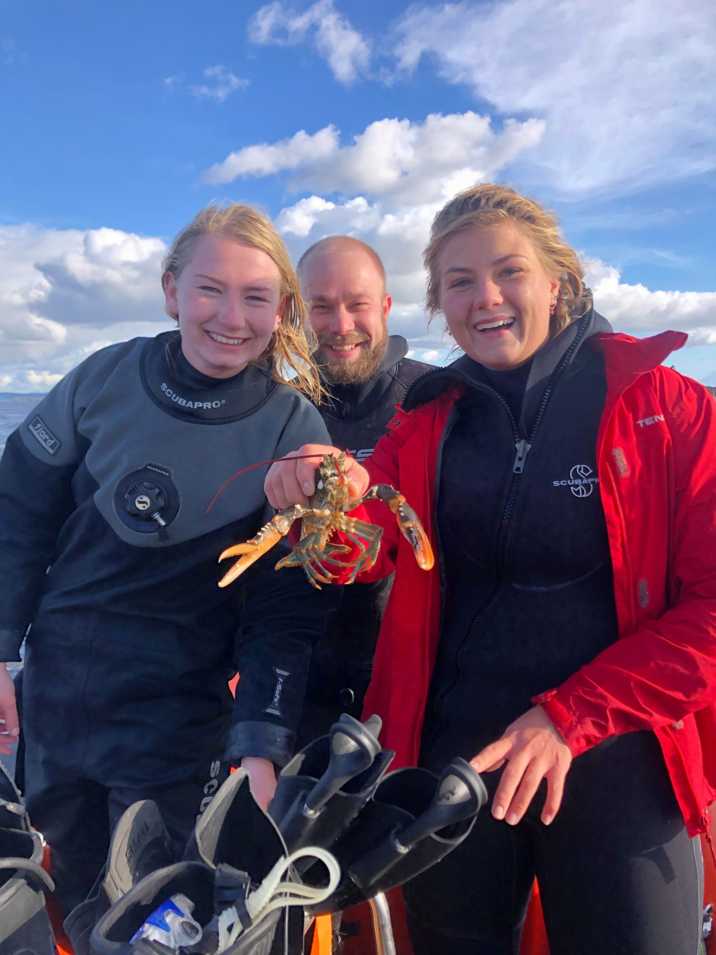 Oppe i båden fik vi set nærmere på vores hummer. Som vi jo alle kender det ser alting større ud på havbunden og hummeren nåede ikke helt målene og han måtte derfor komme overbords igen. Måske han er klar til at komme med hjem næste år!