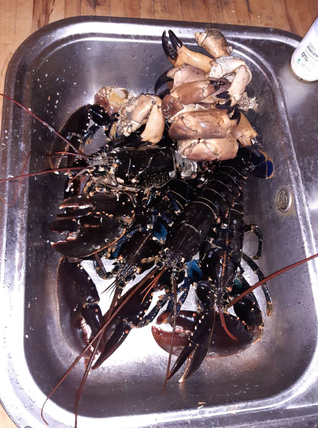 Idag var fangsten så ringe at der nok ikke er nogen der bliver misundelig eller får ondt et vist sted så i får lige et lille billede af baljen. Det var nu en god tur alligevel. Et enkelt dyk på 85 min i tålelig sigt og strøm. Hurra for de høje procenter Sebastian havde fået blandet til mig så det gav slet ikke så meget deco.