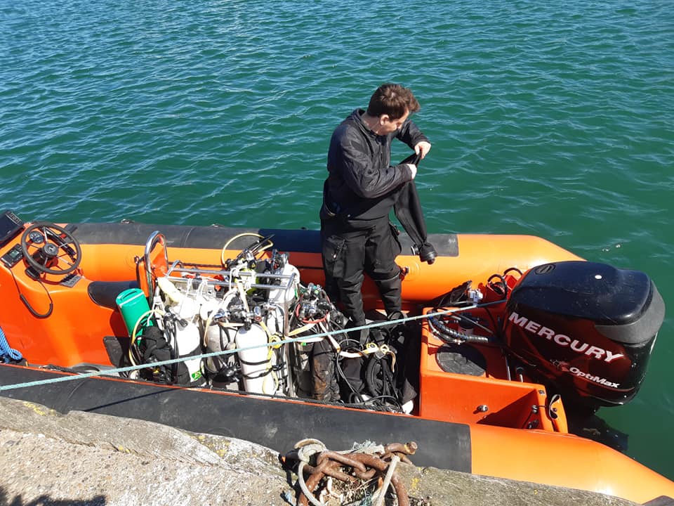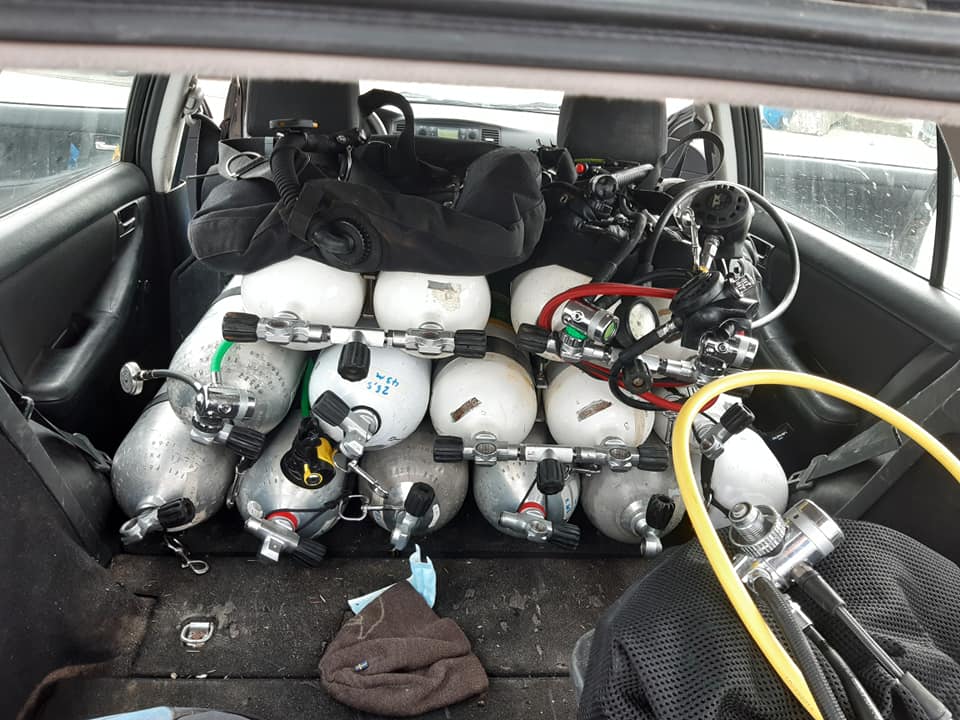 Sådan forsatte dagen til Sebastian og Emil havde besøgt vraget 3 gange og Thomas og Flemming havde været der nede to gange. Lappe løsningen på Flemmings dragt ville kun to dyk så han endte dyk to ret vådt…