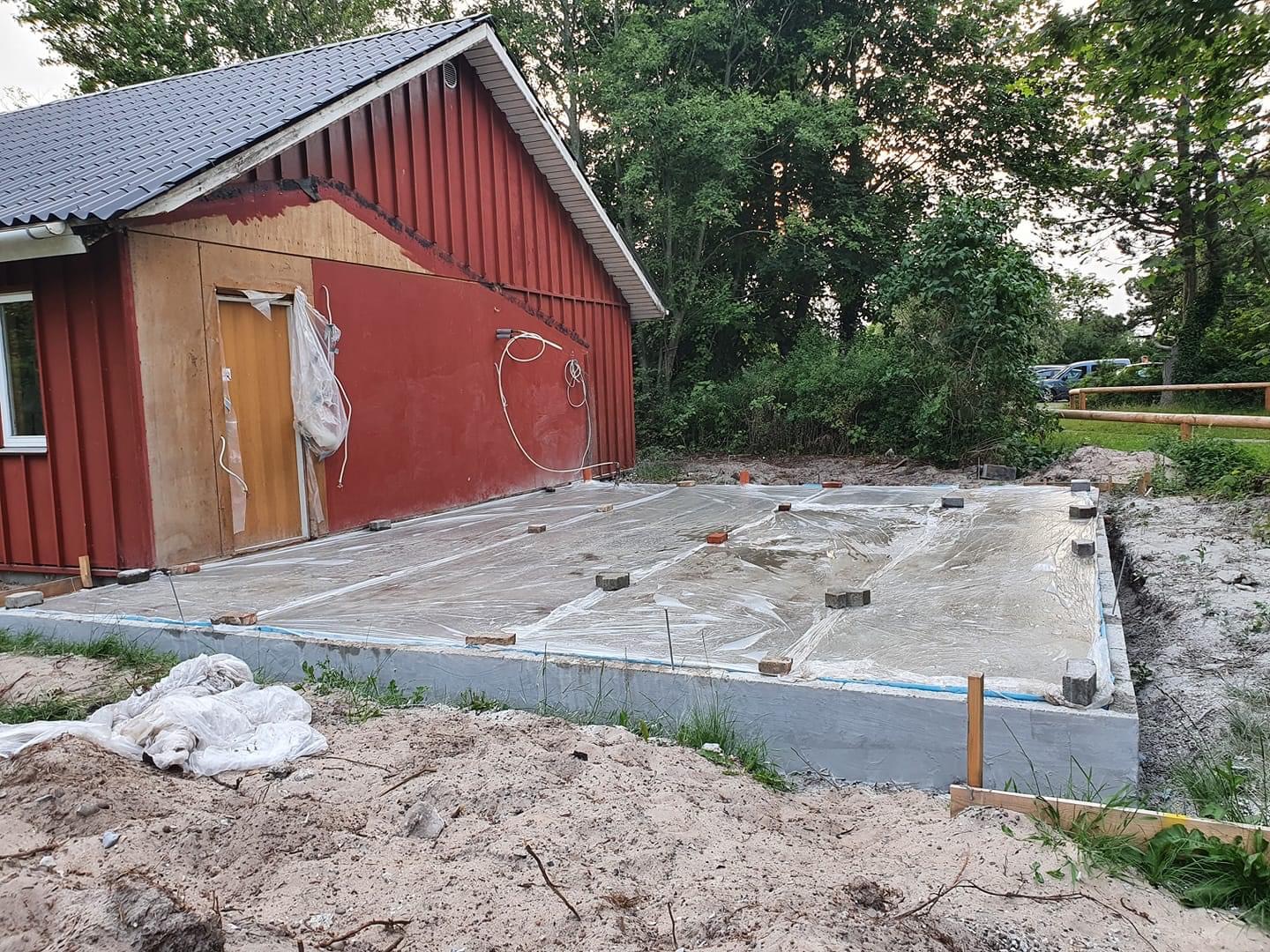 etablering af nyt fundament og terrændæk. Det nye lokale opføres i trækonstruktion i samme stil som