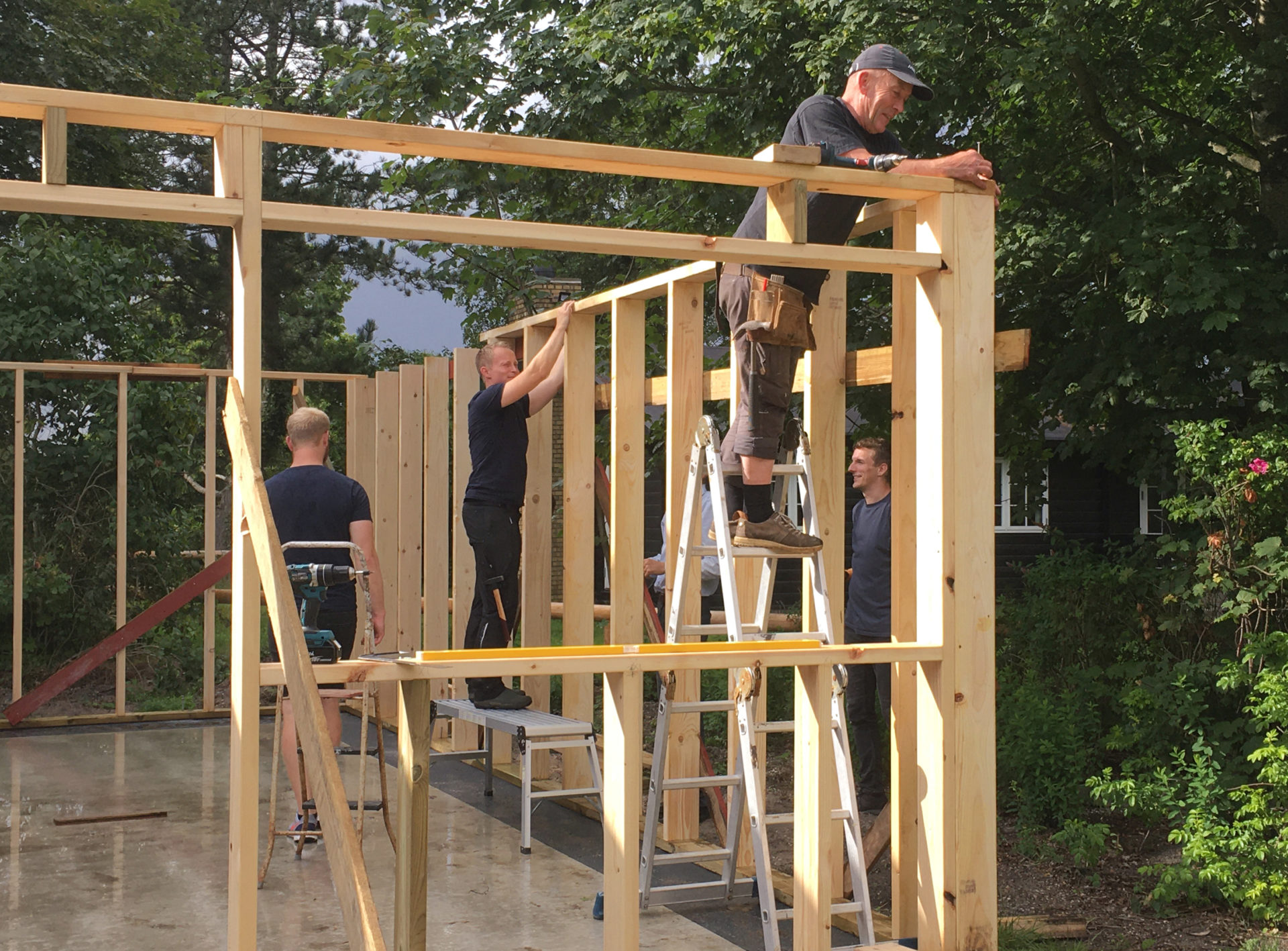 arbejde, bortset fra fundament, terrændæk, el og vvs-installationer, er udført med frivillig arbejdskraft fra