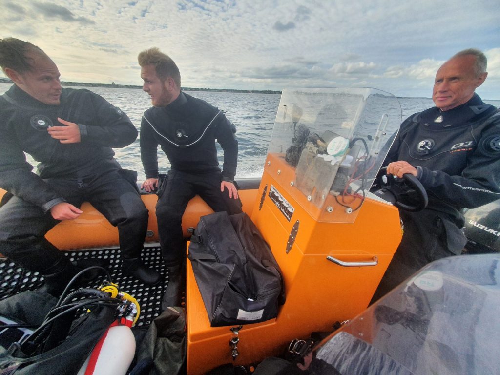 Vi havde længe haft et ønske om at dykke mere med folk fra dykkerklubben Bunden, den gamle udbryderklub med tidligere Biodyk-dykkere. Det blev til en tur med Bjørn, som er deres mest aktive dykker. Vi tog Bundens rib fra lystbådhavnen i Aarhus, hvor deres klubhus ligger. Båden var lastet med både udstyr og proviant i form af et par øller som Michael kom til at drikke lidt mange af. Turen gik til Prammen, men ikke uden problemer. Pga. tekniske omstændigheder havnede forankringen omkring 50 meter fra vraget. Her fandt Michael og Philip dog en stor bunke ammunitionskasser. Så alt i alt endte dykket alligevel med at blive helt fint 🙂