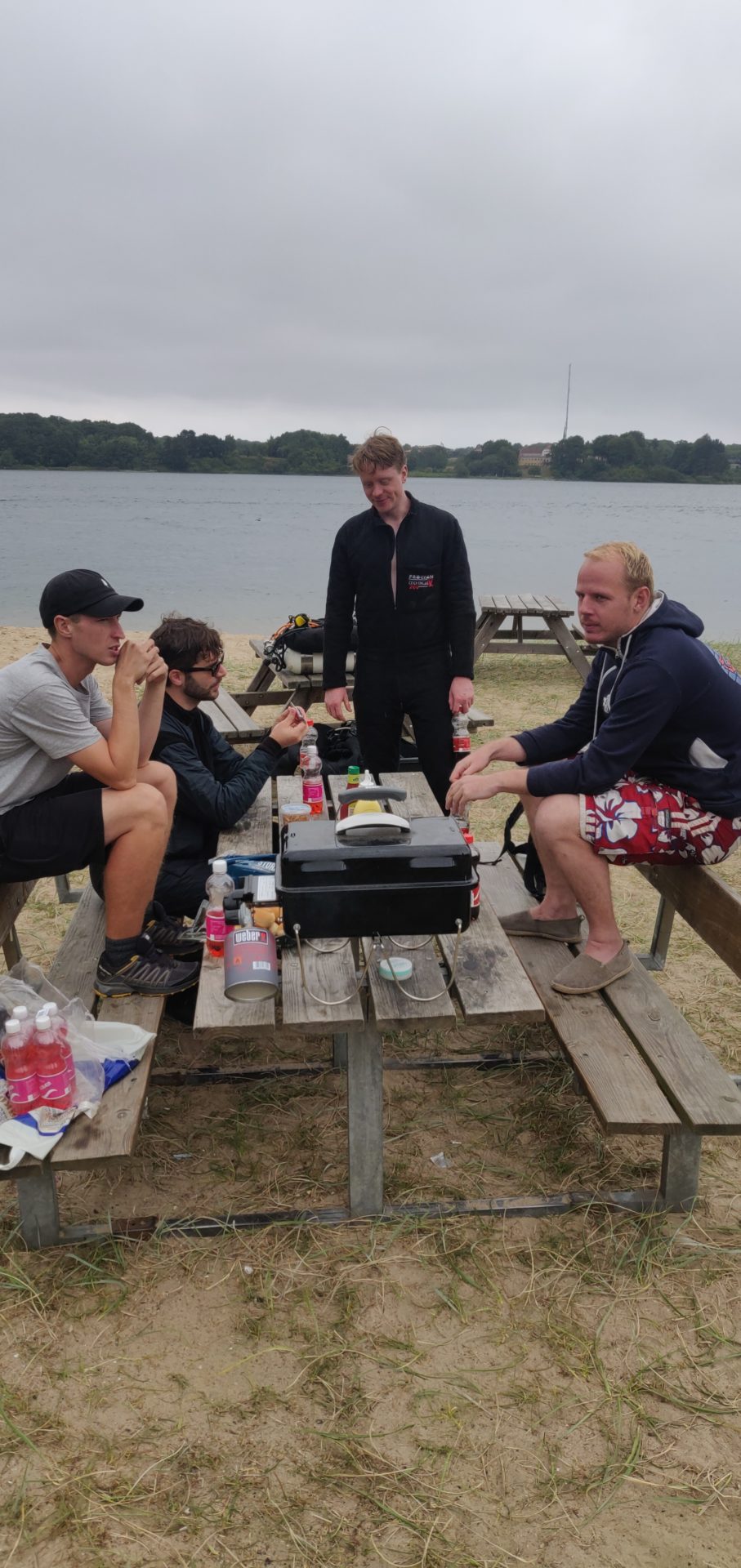 Efter første dyk blev grillen fundet frem, hvor vi så grillede nogle hotdogs og hyggede.