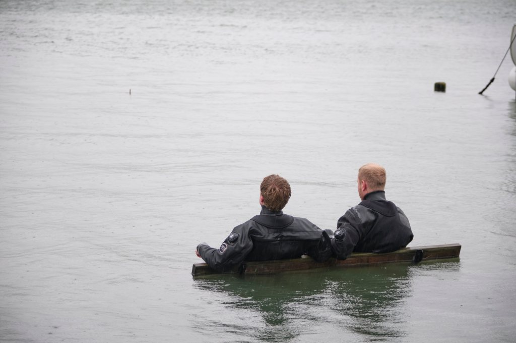 Vi ankom på dagen for stormen og vandet var allerede steget over 1 meter. Vi forsøgte at gå i vandet ved Sønderborg Sportsdykkerklub, hvor der ligger et vrag af en gammel flydedok. Vi mødte de gæstfrie medlemmer fra klubben, som gav os en lille rundvisning i deres fine klub og viste os hvor vi kunne finde vraget. Da vi gik i, måtte vi dog erkende, at sigtbarheden svarede til ca. 0,5 meter. Silt og skidt var blevet vasket ud af stormfloden. Det lykkedes ikke alle at finde vraget og vi afkortede dykket.