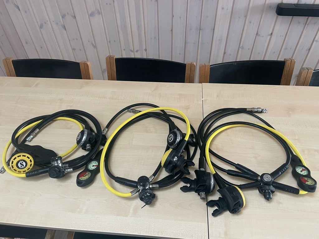Endeligt blev det tid til, at vores tre Scubapro regulatorsæt til udlån skulle serviceres. Dette sker efter anbefaling hvert andet år, med mindre problemer opstår, og således har vi altid regulatorsæt klar til udlån!