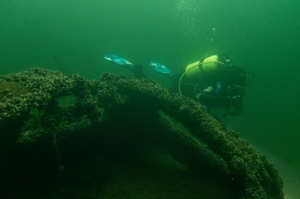 Håbet var at finde den tabte dykkerkniv fra sidste dyk, men i stedet blev der fundet et GoPro hero7 kamera (vi er igang med at finde ejeren) og ENDNU en åre – vi har stadig ikke fundet båden, men efter at have nået op på tre åre fundet, må vi regne med at der er flere nu🤷🏻♀️